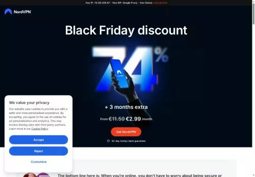 70% discount on 3-year subscription at NordVPN