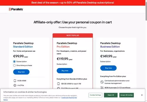 Here are the 1 verified Parallels discounts to save up to 50% on your purchase.